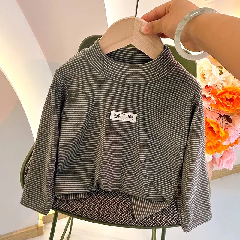 Children's Autumn Winter Clothing Long Sleeve T-shirt Striped Turtleneck Toddler Boys Girls Tops Fashion Undershirt