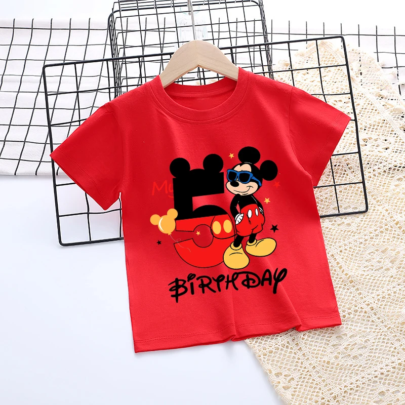 Mickey Mouse Boy Number T Shirt Kids Birthday Party Clothes Cute Cartoon Toddler Cotton Tops Summer Short Sleeve Tees Kids Gift
