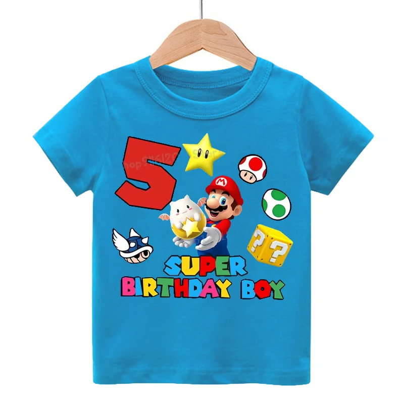 Super Marios Bros Birthday T Shirt baby Boy Number T-Shirts Anime Cartoon Short Sleeve Tee Summer Kids Tops Toddler Clothes