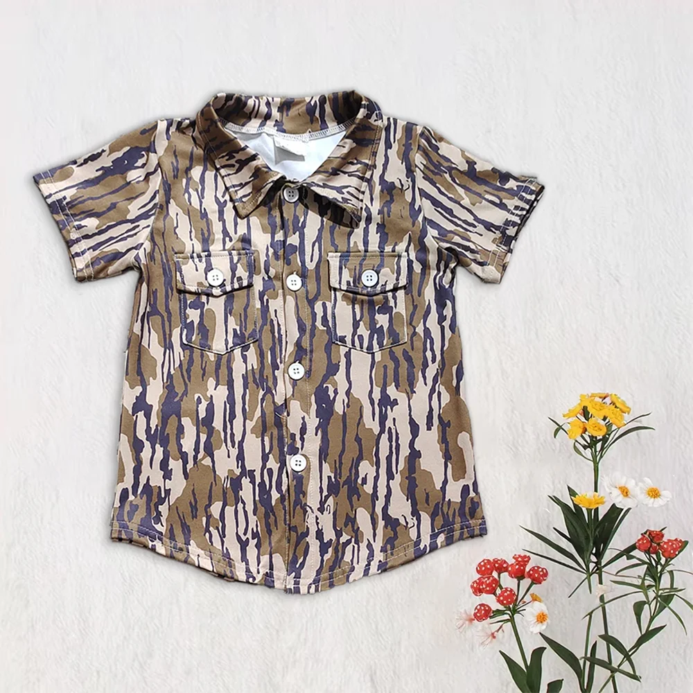 Wholesale Toddler Lapel Tee Pullover Breathable Clothes Infant Children Short Sleeves Kids T-shirt Baby Boy Pockets Camo Shirts