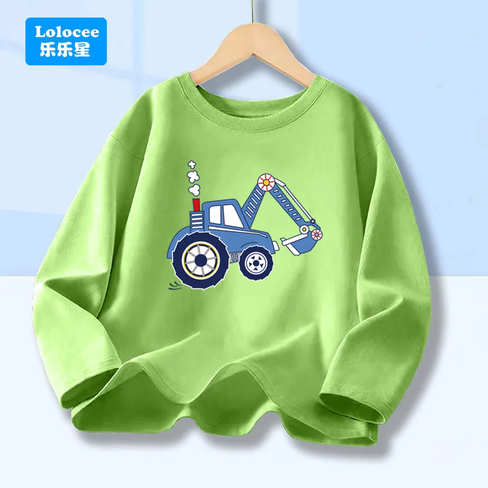 Little Boys Kids Autumn Tops Clothes 2025 Children Vehicle Excavator Print Long Sleeved Toddler T-shirt Cotton Tee WJ1