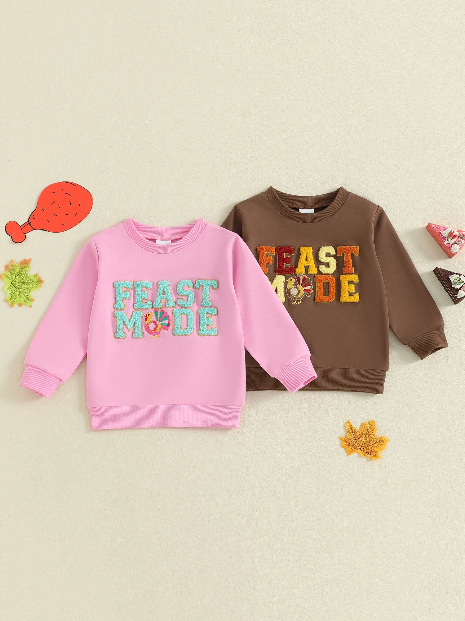 Thanksgiving Toddler Boy Girl Sweatshirt with Turkey Embroidery - Long Sleeve Round Neck Pullover Top for a Festive Look