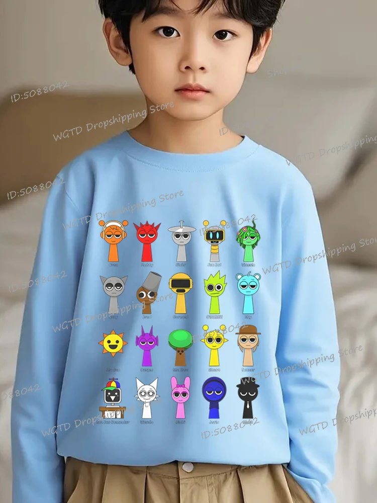 Cute Sprunki T-shirt Printing Tees for 4-14 Age Child New Long Sleeve Cotton Clothing Cartoon Game Figure Fashion Toddler Tshirt