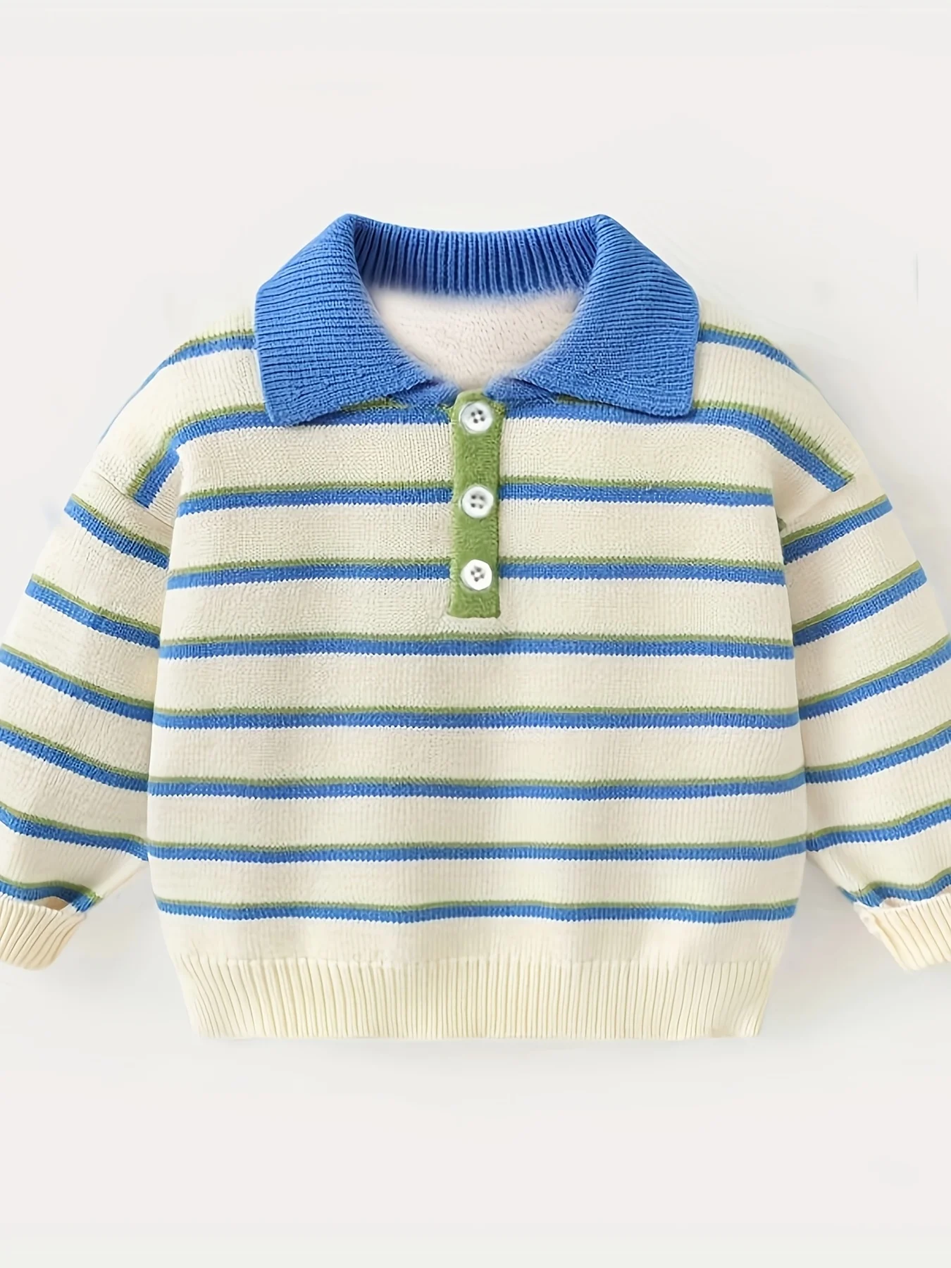 Classic Spring Baby Sweatshirt with Shoulder Buckle 0-3Y Toddler Stripe Knitted Pullover Girls and Boys Loose Base Tops Sweater