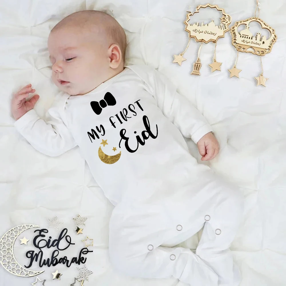 My First Eid Printed Baby Sleepsuit Newborn Bodysuit Infant Long Sleeve Romper Eid Ramadan Islamic Muslim Baby Keepsake Outfit
