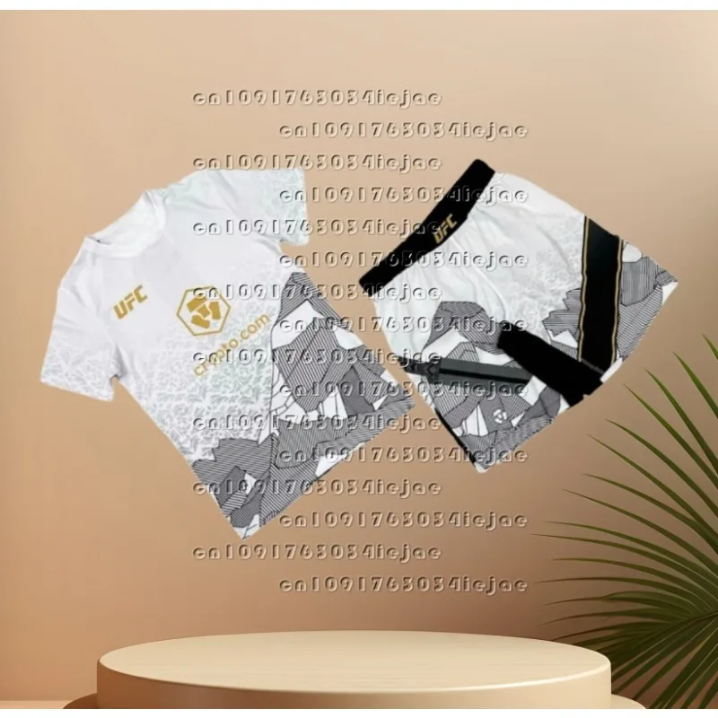 2025 UFC Men's Fighting Wind Speed Dry Short Sleeve Shorts Training Set Red and Black Camo Fighting Style Trendy Set