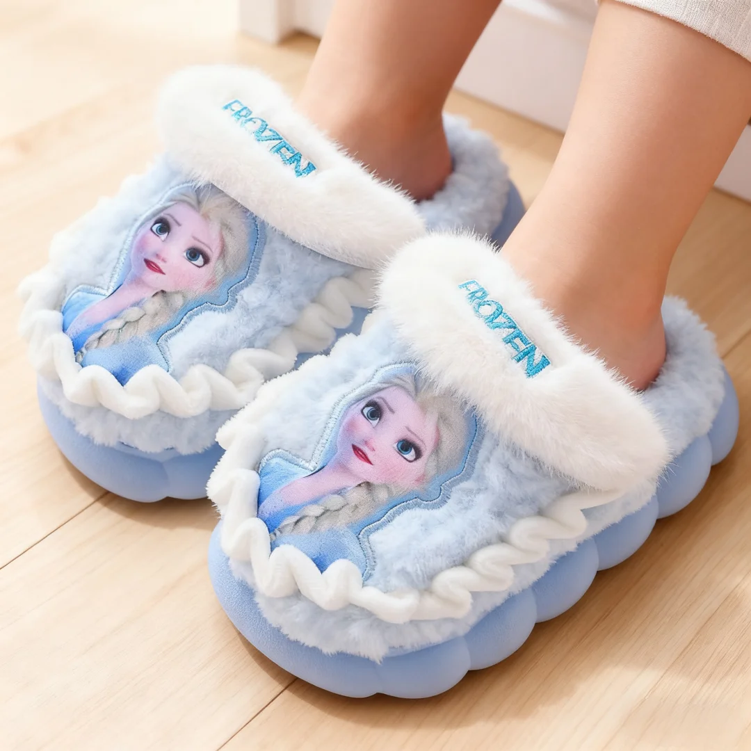 Disney Princess Elsa Winter Children's Cotton Home Slippers Frozen Girl's Snow Non Slip Warm Baby Slippers Pink Blue Size 24-36
