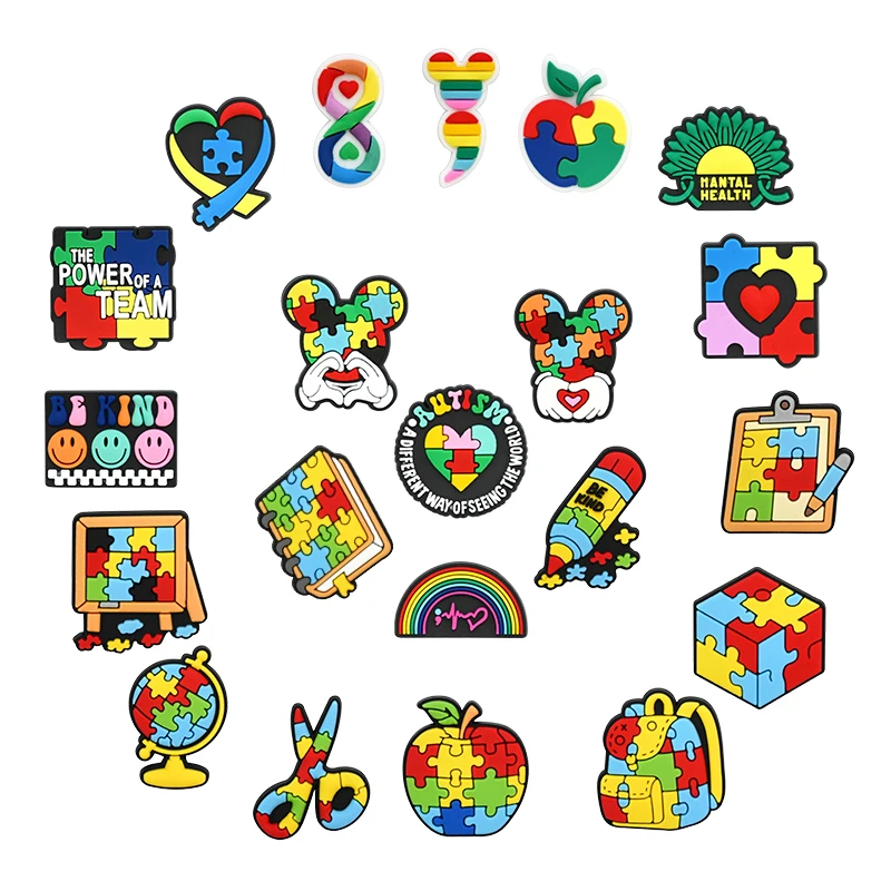 21PCS Autism Stationery Disney Fall Winter Shoe Charms Garden Shoe Accessories Buckle Fit Clogs Sandals Decorate kids Xmas Gifts