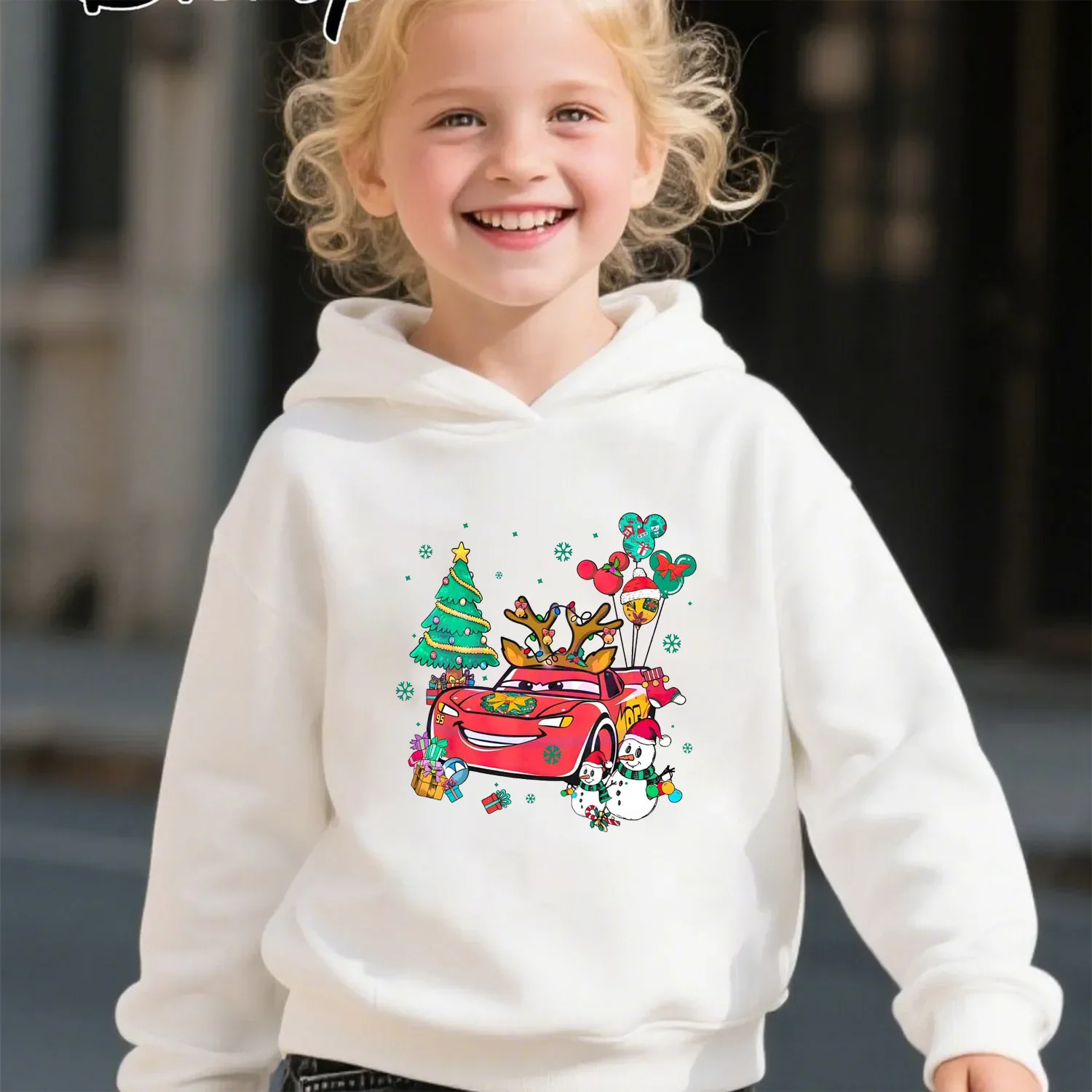 Cartoon Lightning McQueen Christmas Autumn Boys and Girls Hooded Pullover Holiday Gift Long-sleeved Pullover