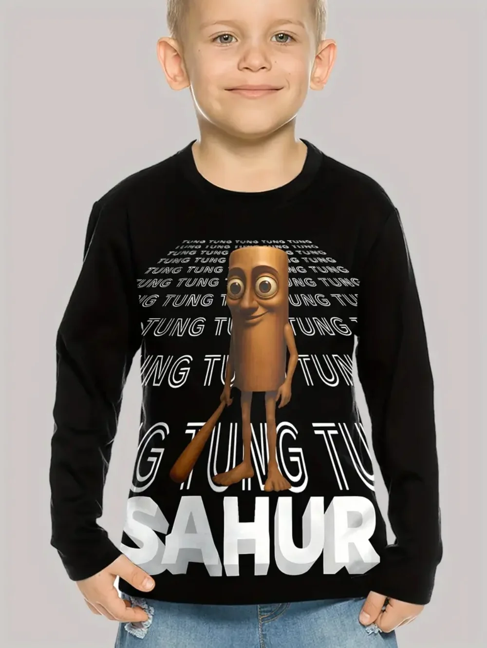 Italian Brainrot Children Fashion Long Sleeve T-Shirt Loose Comfortable Top Cartoon Pattern Children's Clothing Birthday Gift