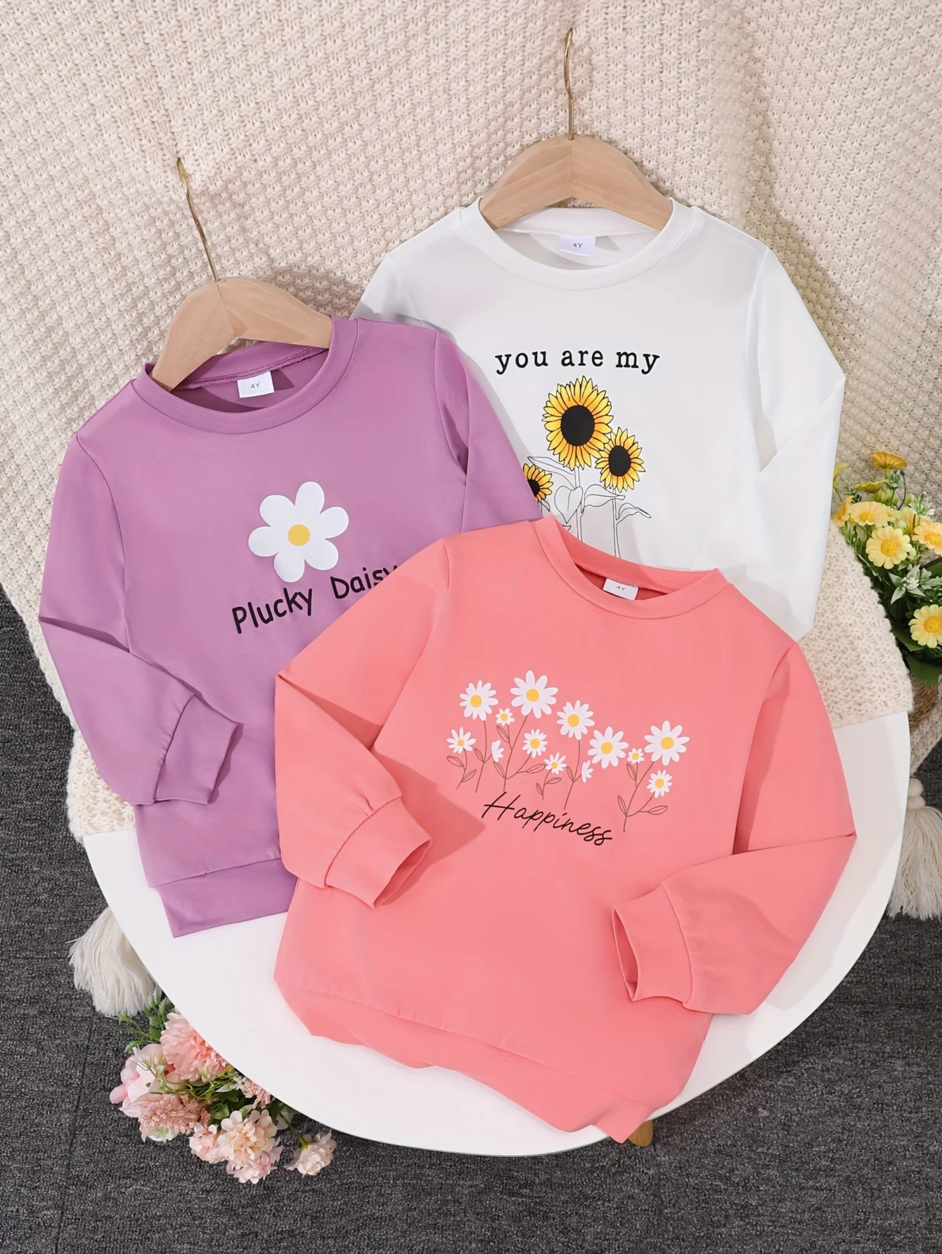 3pairs/Lot Girls Spring And Autumn Leisure Soft And Comfortable Simple Everything Sweet Long Sleeve T-Shirt Flower Pattern