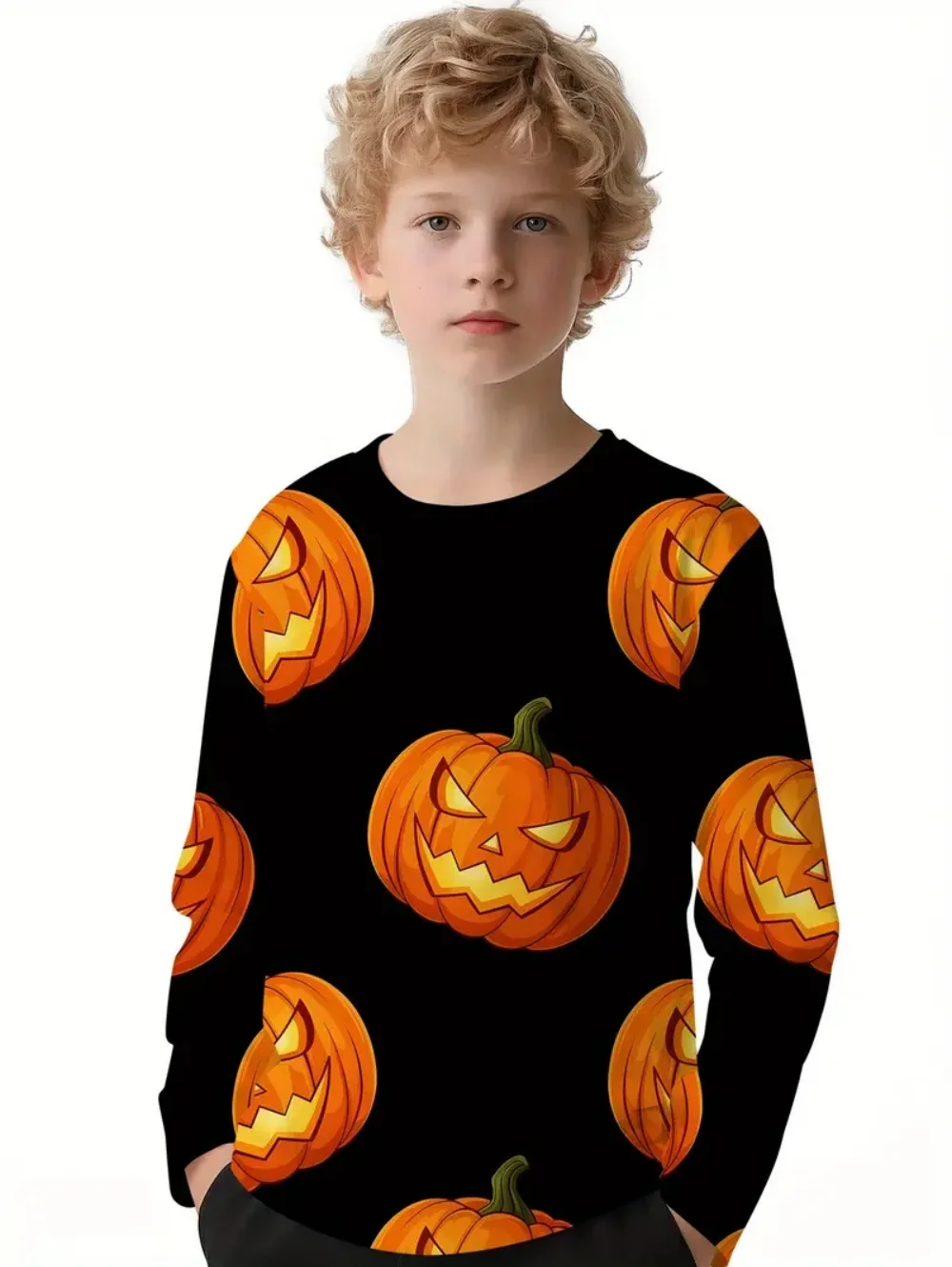 Halloween Boy's T-Shirt Pumpkin Pattern Print Summer Long Sleeves Casual Fashion Kids Tops 2-12 Party Gift Children's Clothing  Read more