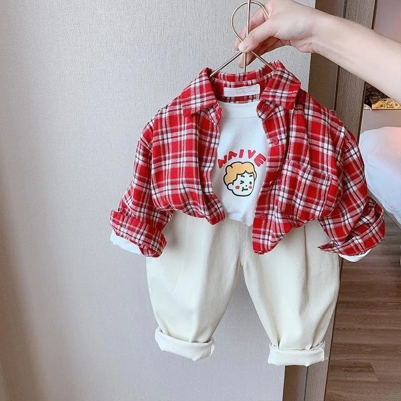 Spring and Autumn Boys and Girls Long sleeved Shirt Children's Baby Plaid Top New Korean casual coat