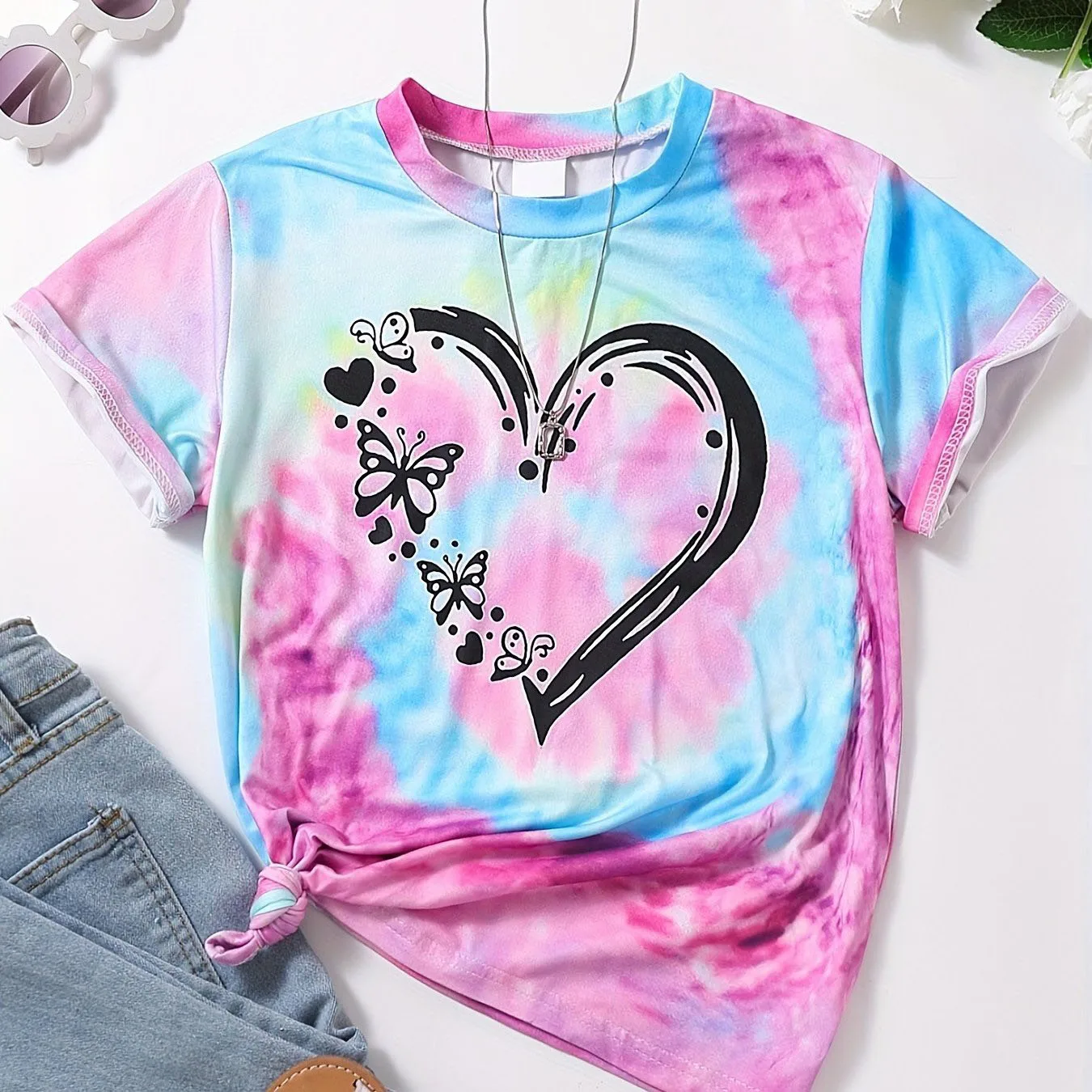 Girl Clothes Child T-Shirt Short Sleeve Heart Print Tie Dye Girl T-Shirt Top Casual Tees Kids Summer Clothes Children's Clothing  Read more