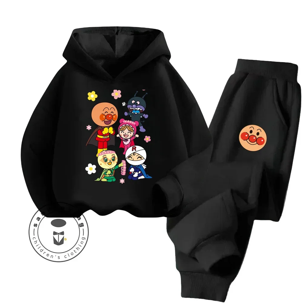 2024 Anpanman Fashionable Cartoon Long Sleeve Streetwear for Kids Age 3-14 Spring Autumn Casual Designs Kawaii Hoodie Tracksuit