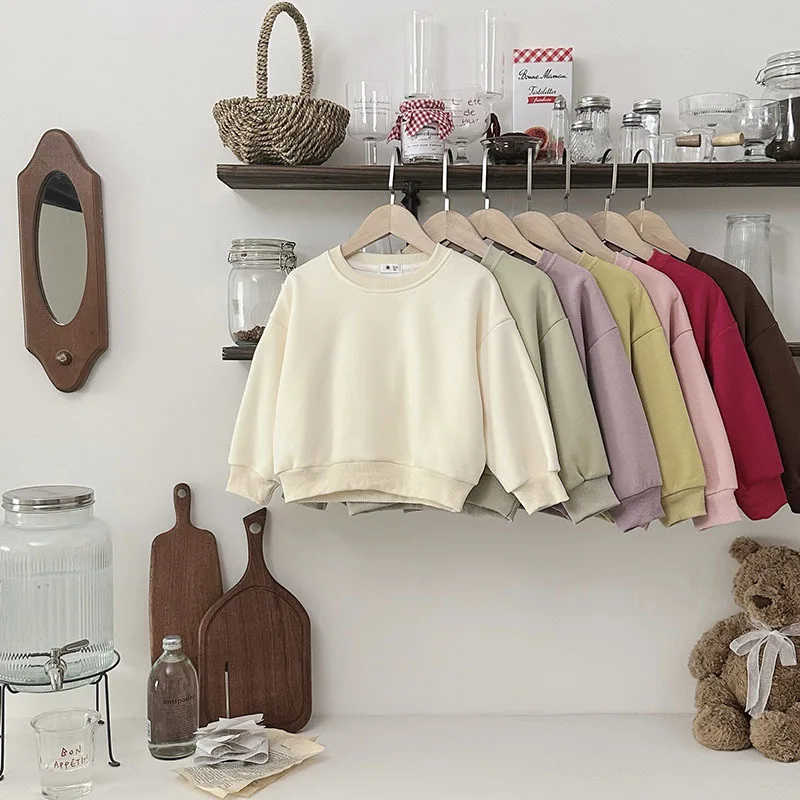 Children Girls Round Collar Sweatshirt Autumn 2024 Solid Long Sleeve Baby Boy Pullovers Casual Versatile Little Girl Bottom Tops