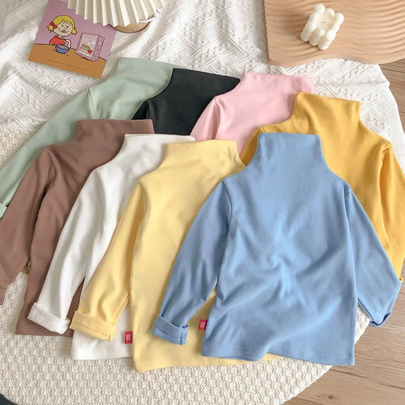 Autumn New Children's Light Fleece Half High Neck Bottoming Shirt Casual Boys And Girls Baby Warm Inside Long-Sleeved T-Shirts
