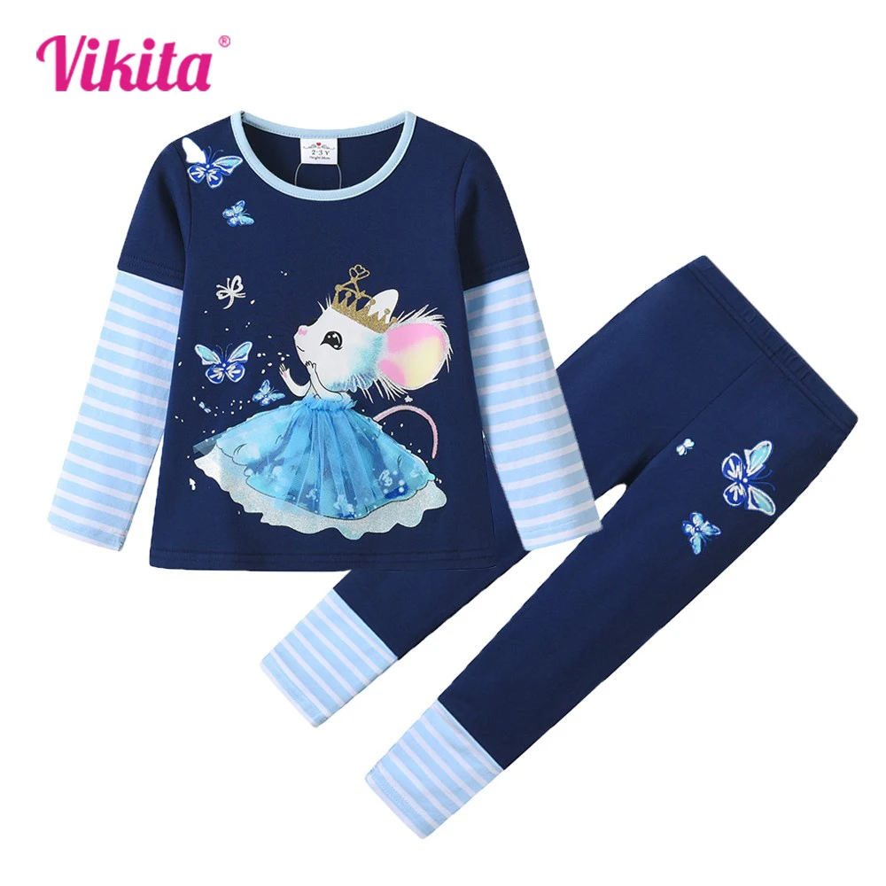 VIKITA Girls Clothing Sets Kids Long Sleeve Rabbit Cartoon Appliqued Cotton Casual Tops Tees and Pencil Pants Leggings 2 Pcs