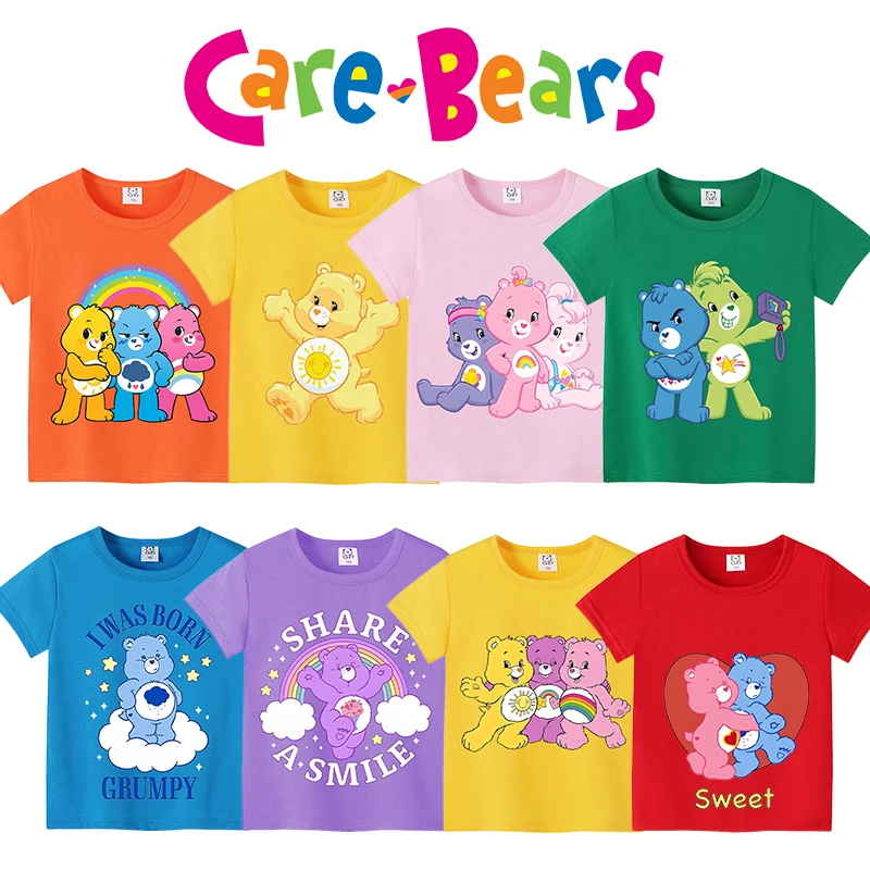 Care Bears Children T-shirts Boys Girls Kawaii Anime Trendy Short Sleeved Summer Clothes Casual Loose Tee Tops Kid Clothing Gift