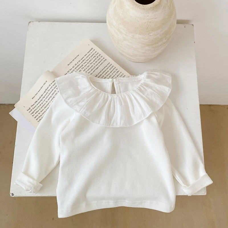 New autumn baby clothing, 0-2 year old girls, lotus collar flower solid color top, T-shirt