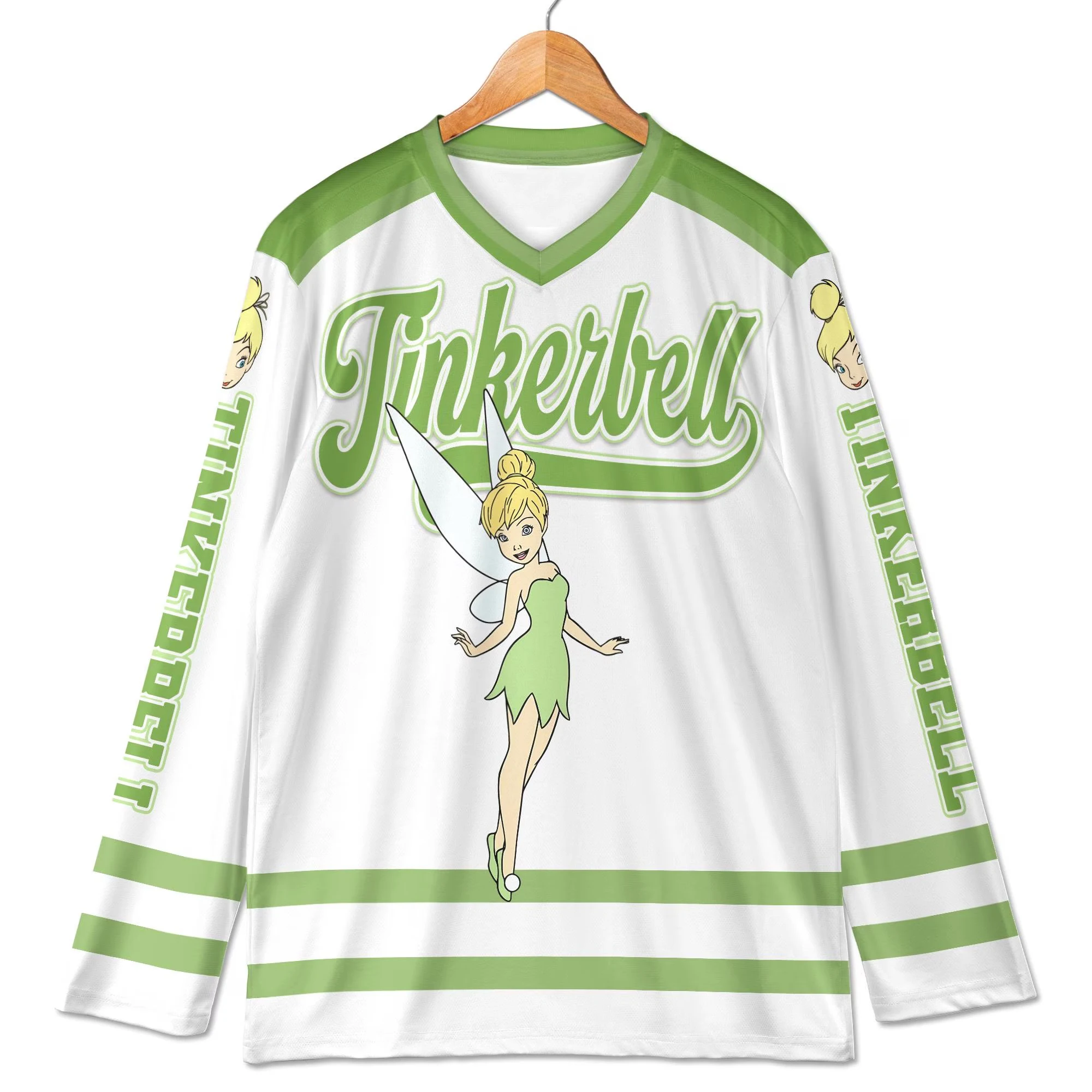 Disney Tinkerbell Floral Hocky Player Jersey Adult Kids Long Sleeve T-Shirts Breathable Quick-drying Comfy Soft Strentchy Large