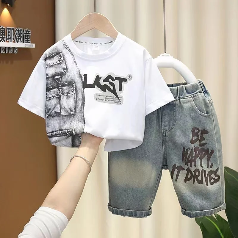 New Summer Short Sleeve Pullover Cotton T-Shirt And Jeans Shorts 2pcs Baby Boys Boutique Clothes Children Sport Outfit Kids Set