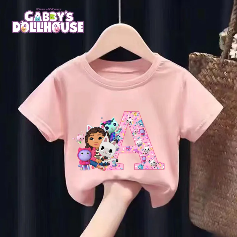 New Gabby Dollhouse T-shirt for Child A-Z Letters Tee Fashion Tops Cute Cartoon Girl Clothes Anime Kids Summer Short Sleeve Gift