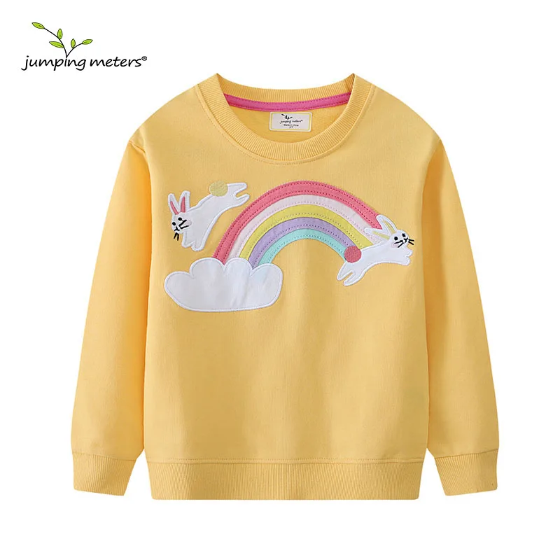 Jumping Meters 2-7T Rainbow Girls Sweatshirts Bunny Embroidery Long Sleeve Baby Hooded Sport Shirts Autumn Spring Clothes  Read more