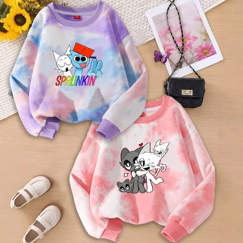 Sprunki Boys Girls Sweatshirts Incredibox Kids Spring Thin Clothes Fashion Cute Streetwear Cartoon Game Print Tops Birthday Gift