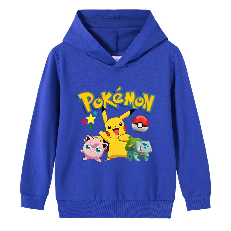 New Children's Autumn and Winter Hooded Sweatshirt Boys and Girls Outdoor Sports Shirt Long Sleeve Top Cartoon Pikachu Print Top