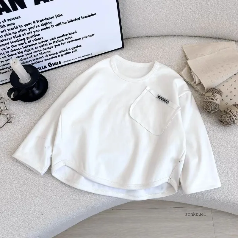 Children Long Sleeved Base Shirt Boys Girls Kids Top Autumn Boy Girl Baby O-neck Solid Bottoming Shirt Sweatshirt