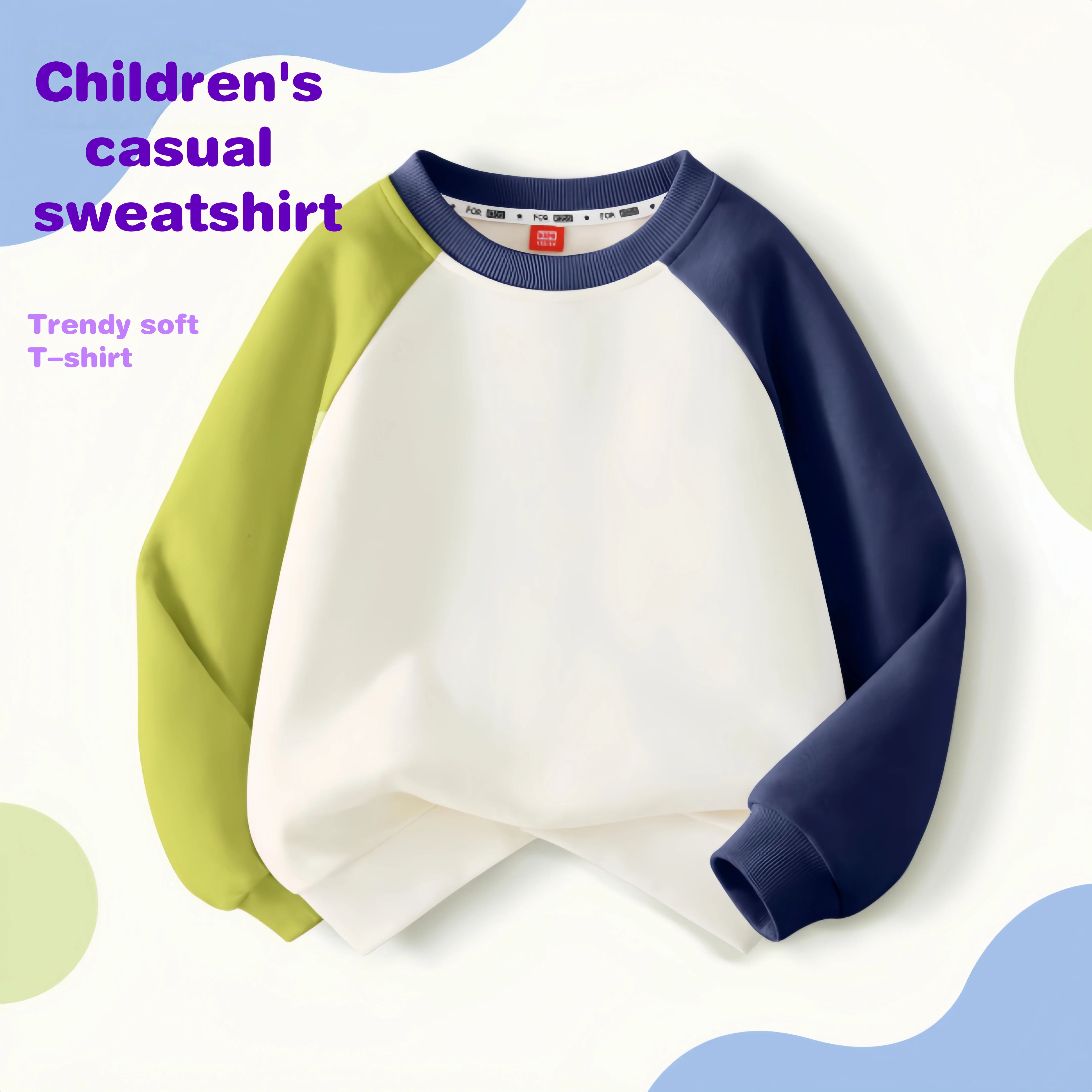 Children Concise Style Pullover Hoodie Color Block Patchwork Autumn Winter Long-sleeve Shirt Pure Cotton Soft Kids Pullover