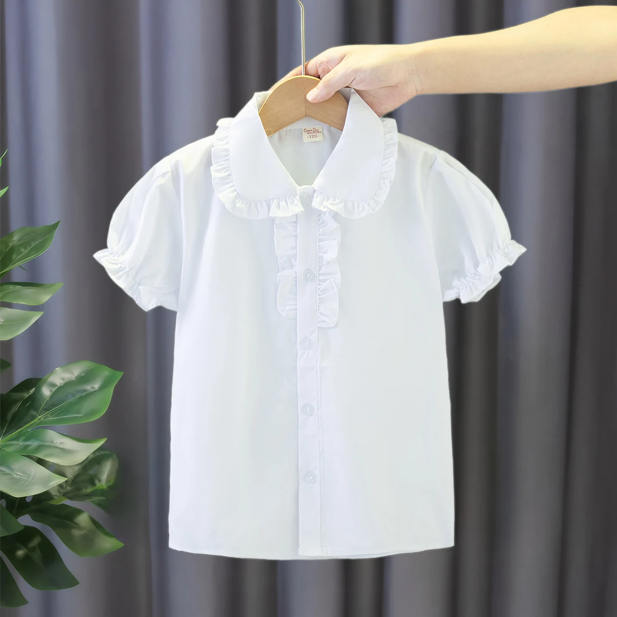 Baby Clothes Summer Solid Color Doll Collar Bubble Sleeve Ruffled Design Baby Tops Casual Simple Girls Blouse  Read more
