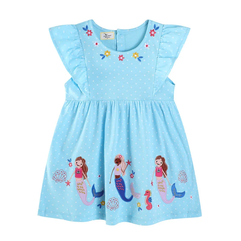 Jumping Meters 2-7T Mermaid Cotton Summer Princess Embroidery Applique Girls Dresses for Baby Costume Hot Selling Kids Dress
