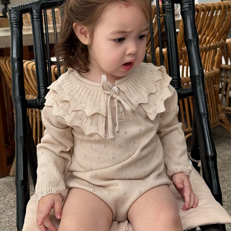 2025 New Autumn 0-24M Clothing Newborn Baby Girls Knitted Bodysuits Long Sleeved Solid Color Infant Baby Girls Knitted Jumpsuit