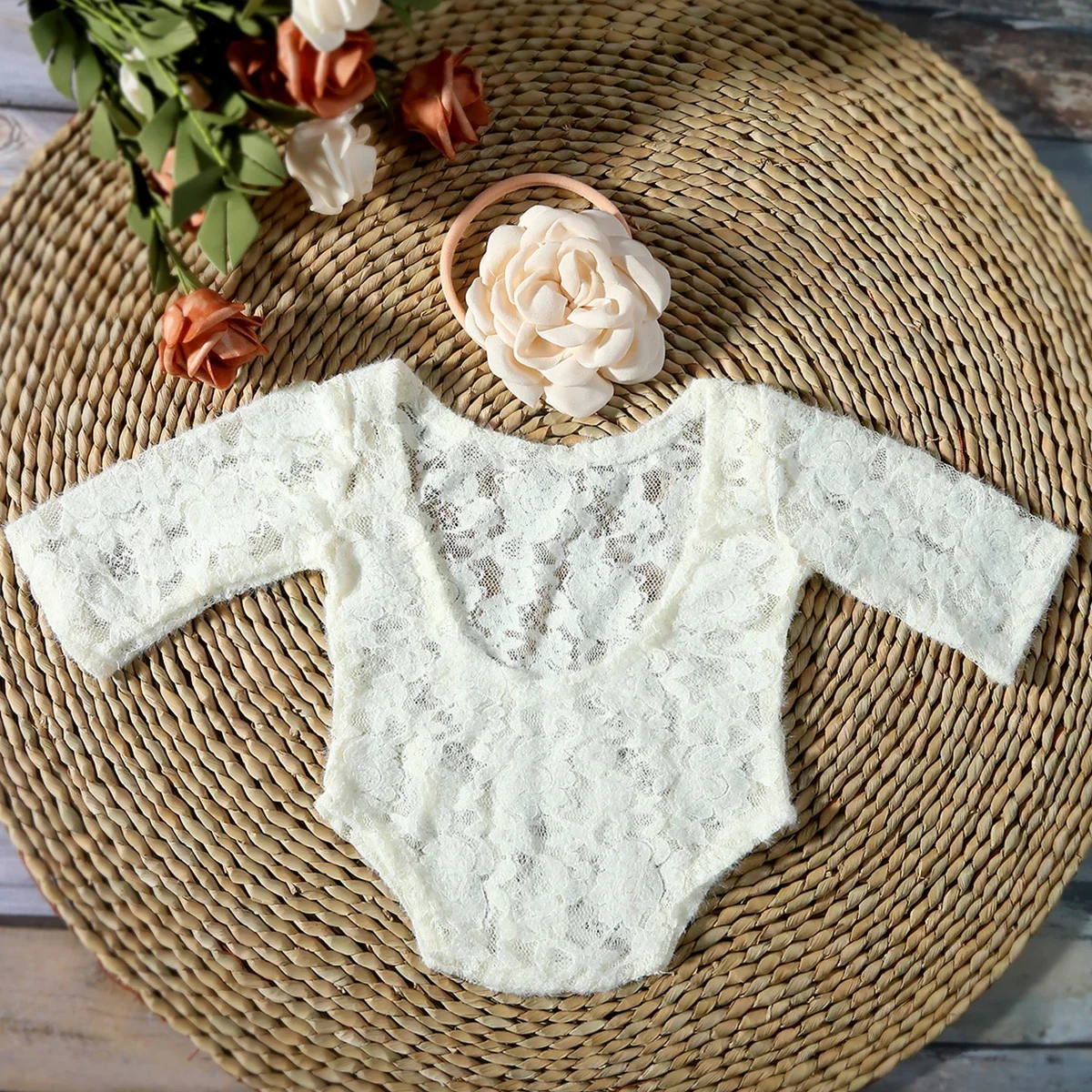 Ylsteed Newborn Lace Romper for Photo Shooting Hollow Back Baby Girl Photography Outfits with Headband Infant Picture Props