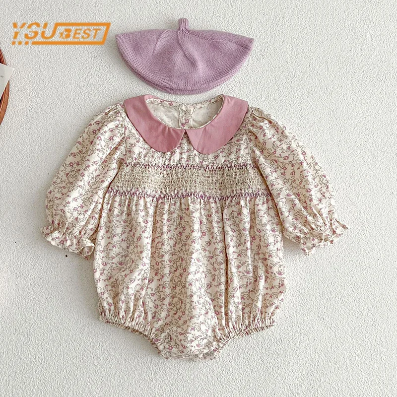 Newborn Clothes Baby Embroidered Flowers Romper 2025 Spring New Clothes Baby Girl's One Piece Clothes Cotton Climbing Clothes