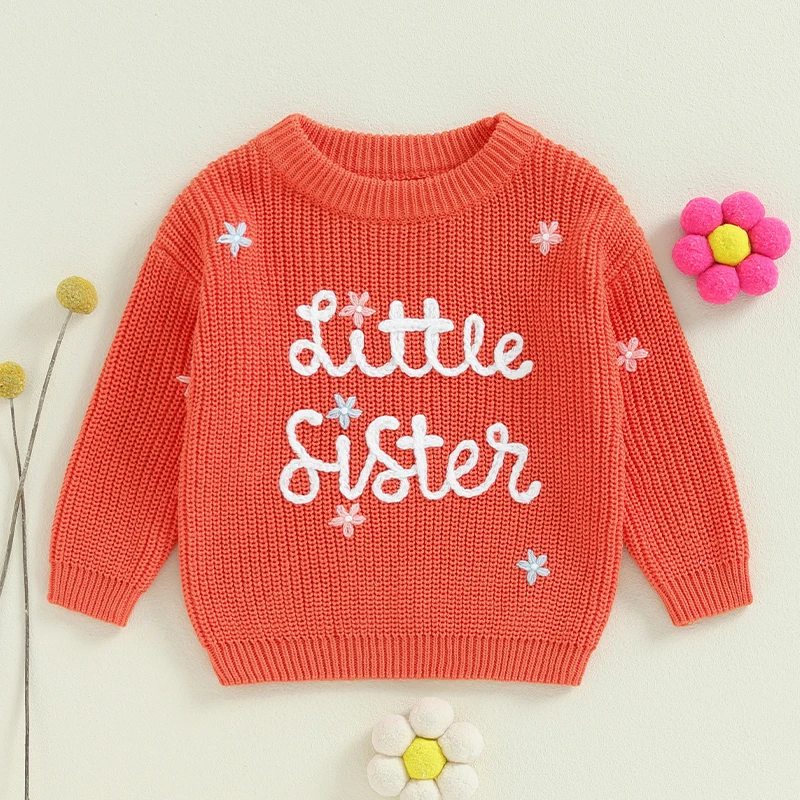 Little Sister Newborn Outfit Baby Girl Winter Clothes Knitted Sweater Matching Sister Sweatshirt Fall Clothes