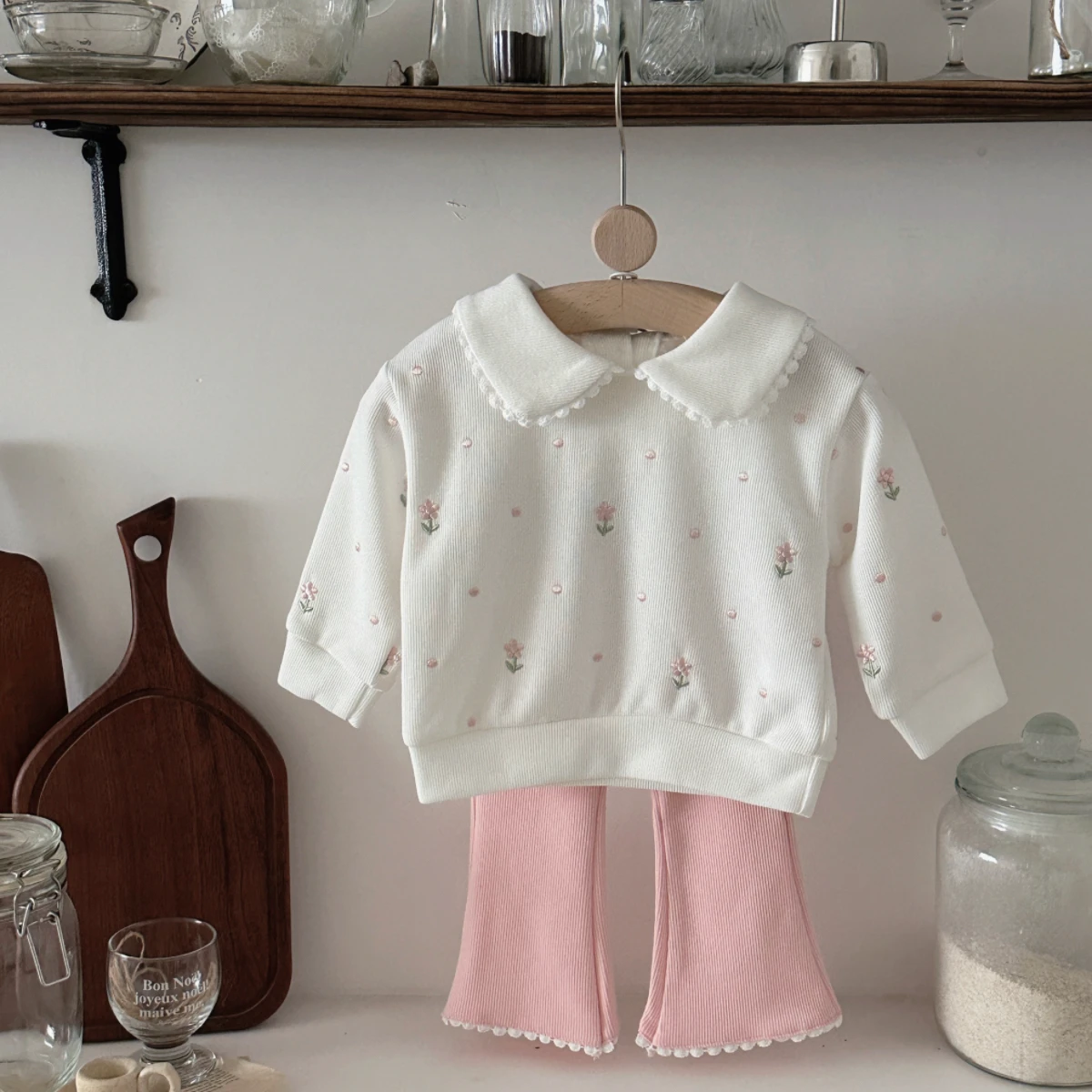 2Pcs/set Baby Clothes Set Girl Long Sleeved Top + Pants Spring Autumn Pink Floral Embroidered Newborn Baby Clothing Newborn Item