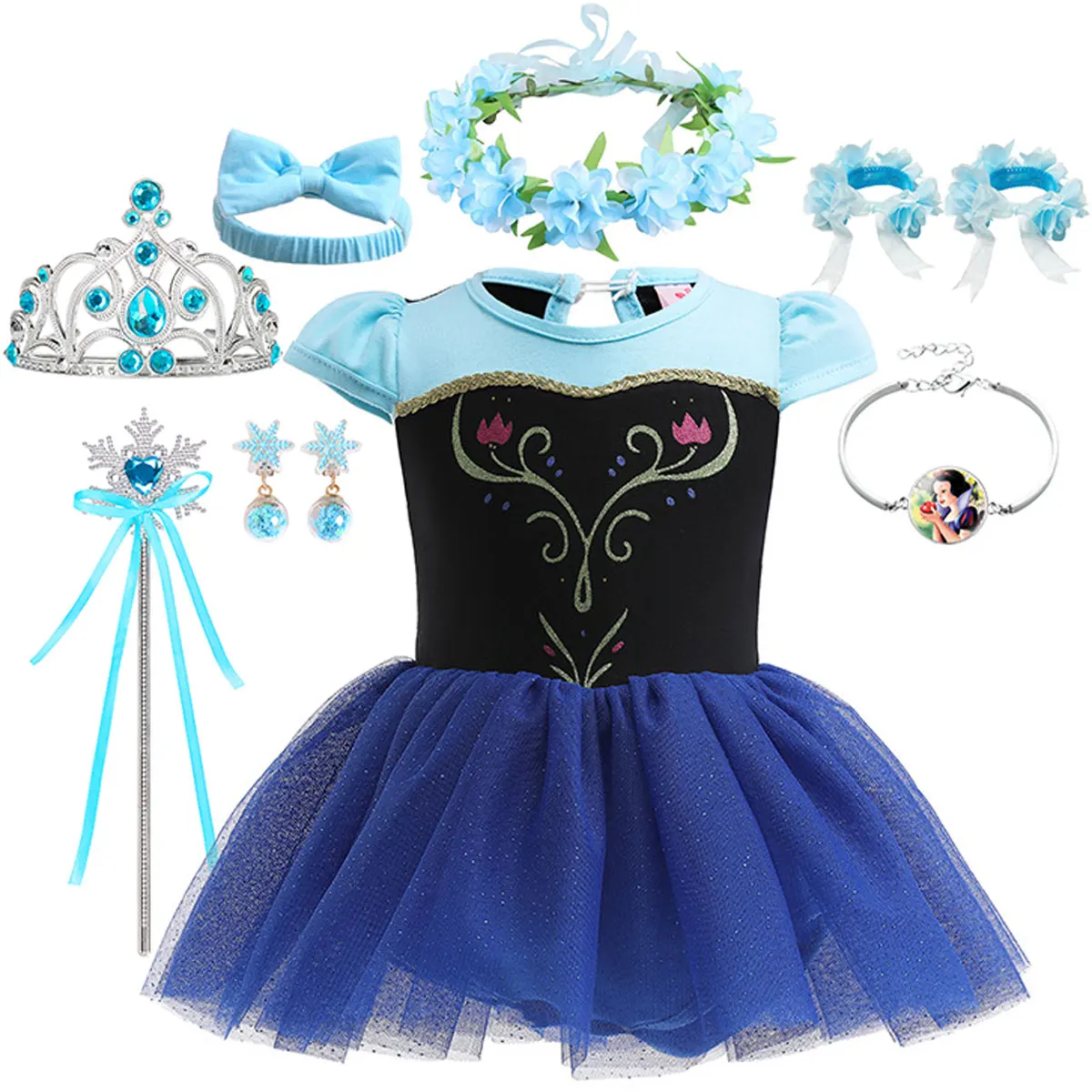 Disney New Infant Baby Romper Blue Dress Snow White Elsa Anna Costume Cute Design Baby Cotton Dress+Headband Accessories Set  Read more