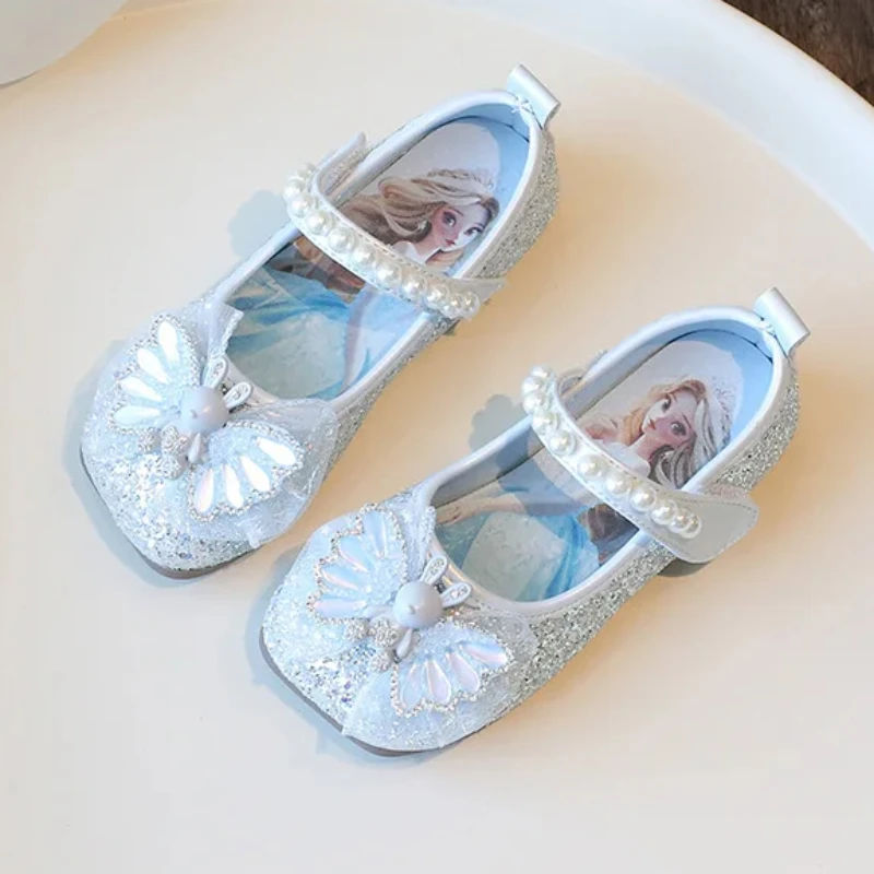 Diseny Kids'Sandals Elsa Princess Frozen PU Leather Spring Pearl Bow Shoes For Girls Anti-slip Soft Bottom White Blue Size 23-35