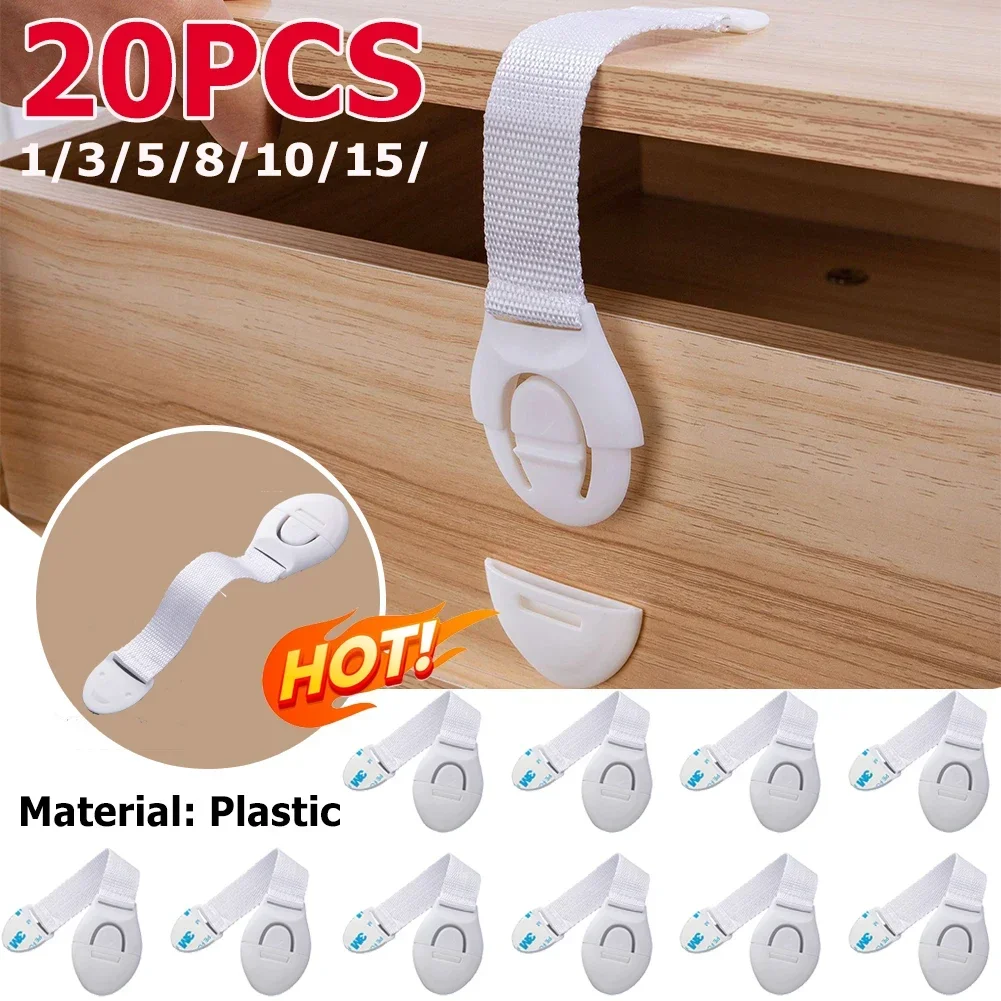 1-20PCS Child Safety Strap Locks No Drilling Drawer Lock Adhesive Plastic Protection Kids Safety Door Lock For Cabinets Drawers