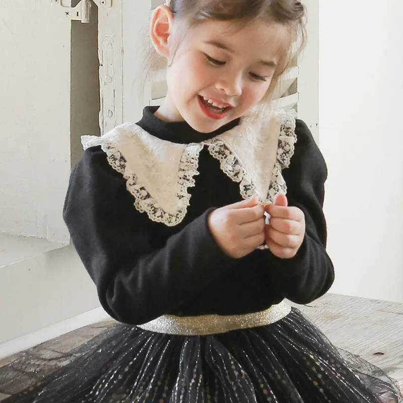 Hoodies Girls Plush T-shirt Winter Korea Lapel Collar Fashion Thickening Versatile Sweatshirts Lace Soild Cotton Puff Sleeve  Read more
