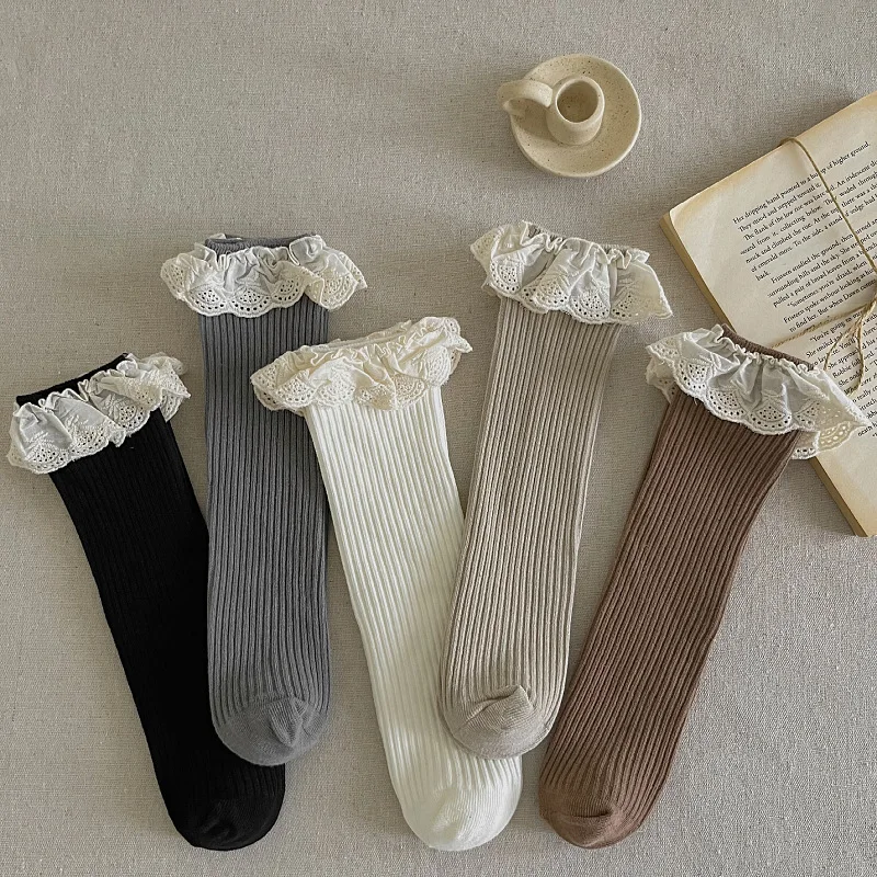 Ruffle Kids Knee High Socks Baby Girls Toddlers Long Soft Cotton Sock Lace Flower Children School Uniform Socks For 0-8 Years