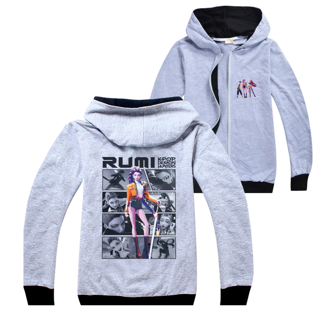 Kpop Demon Hunter Huntrx Rumi Zip Up Hoodie Kpop Demon Hunters Cosplay Hoodie Girls Boys Sweatshirt Zipper Hoody Baby Casual Top