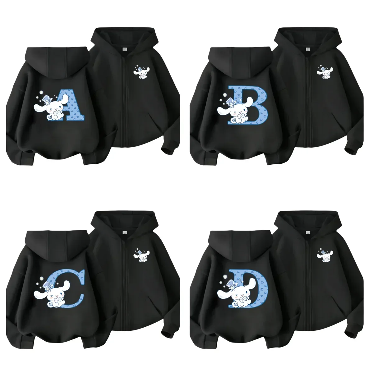 Sanrio Cinnamoroll Children Zipper Hoodies Letter A B C D Sweatshirts Girl Clothes Kawaii Pullover Anime Cartoons Boy Kids Tops