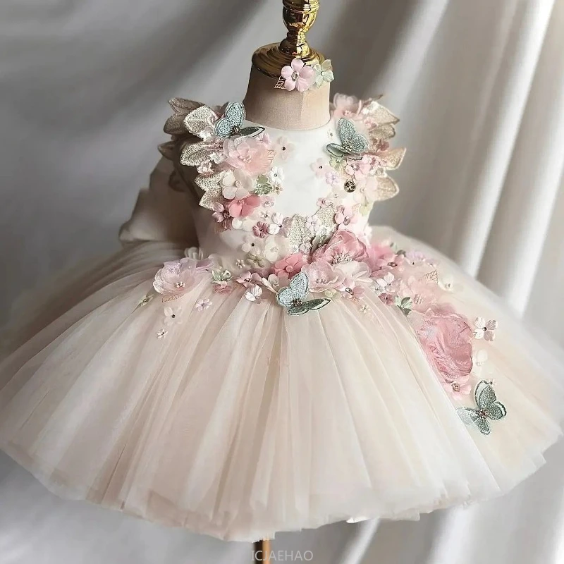 Wed Dress Summer Children Girls First Birthday Floral Princess Gown Costumes Flower Floral Princess Gown Costumes Flower