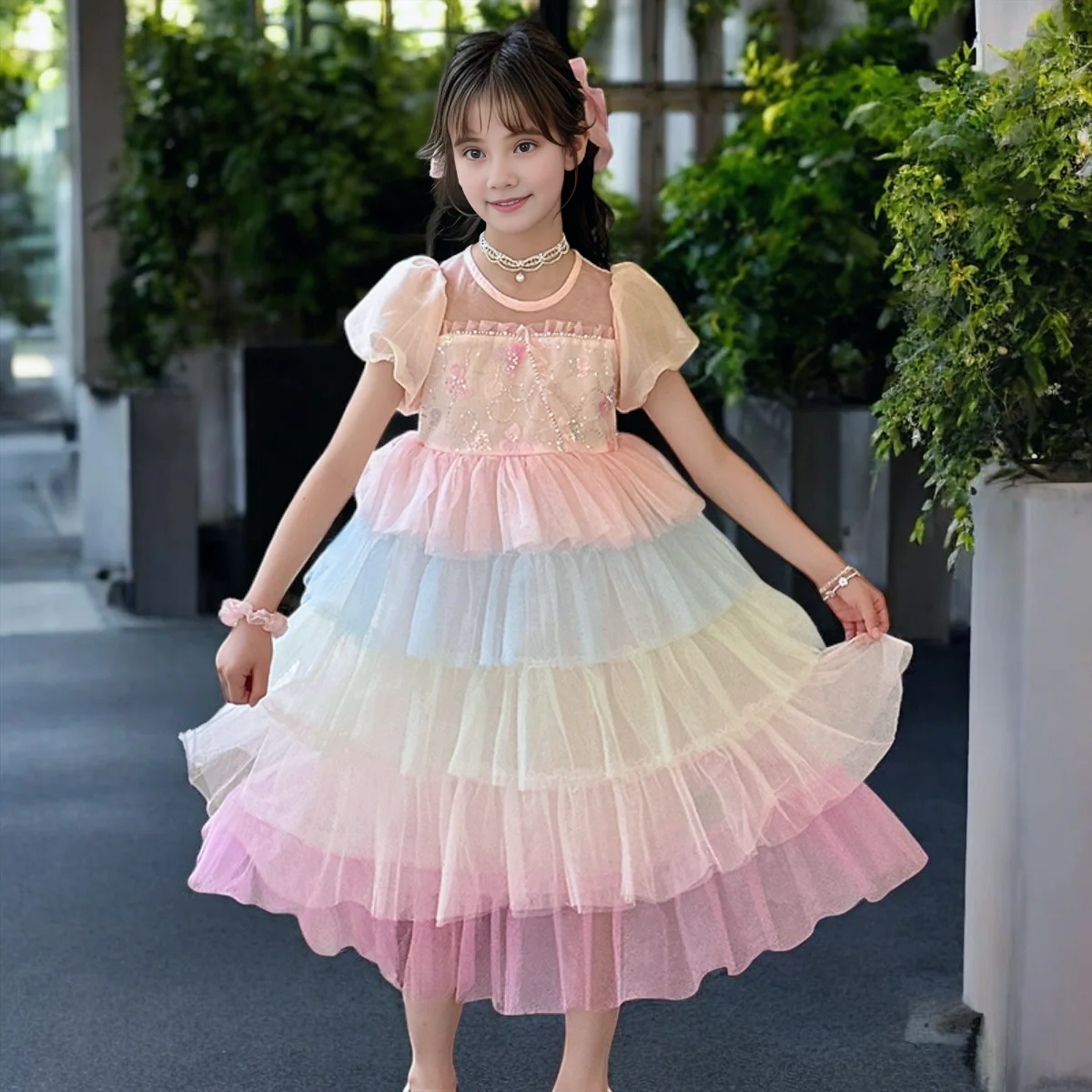 Kids Lolita Flower Dresses for Girls Princess Dress Baby Party Outfits Short Sleeve Summer Children Costumes 4 6 8 9 10 12 Years
