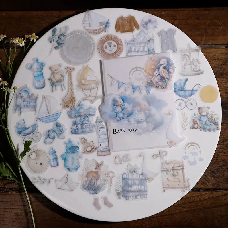 43pcs Pregnancy Newborn Stickers Cute Baby Girls Boys Stickers Scrapbooking Bear Dress Flower Stickers Baby Gift Card Making