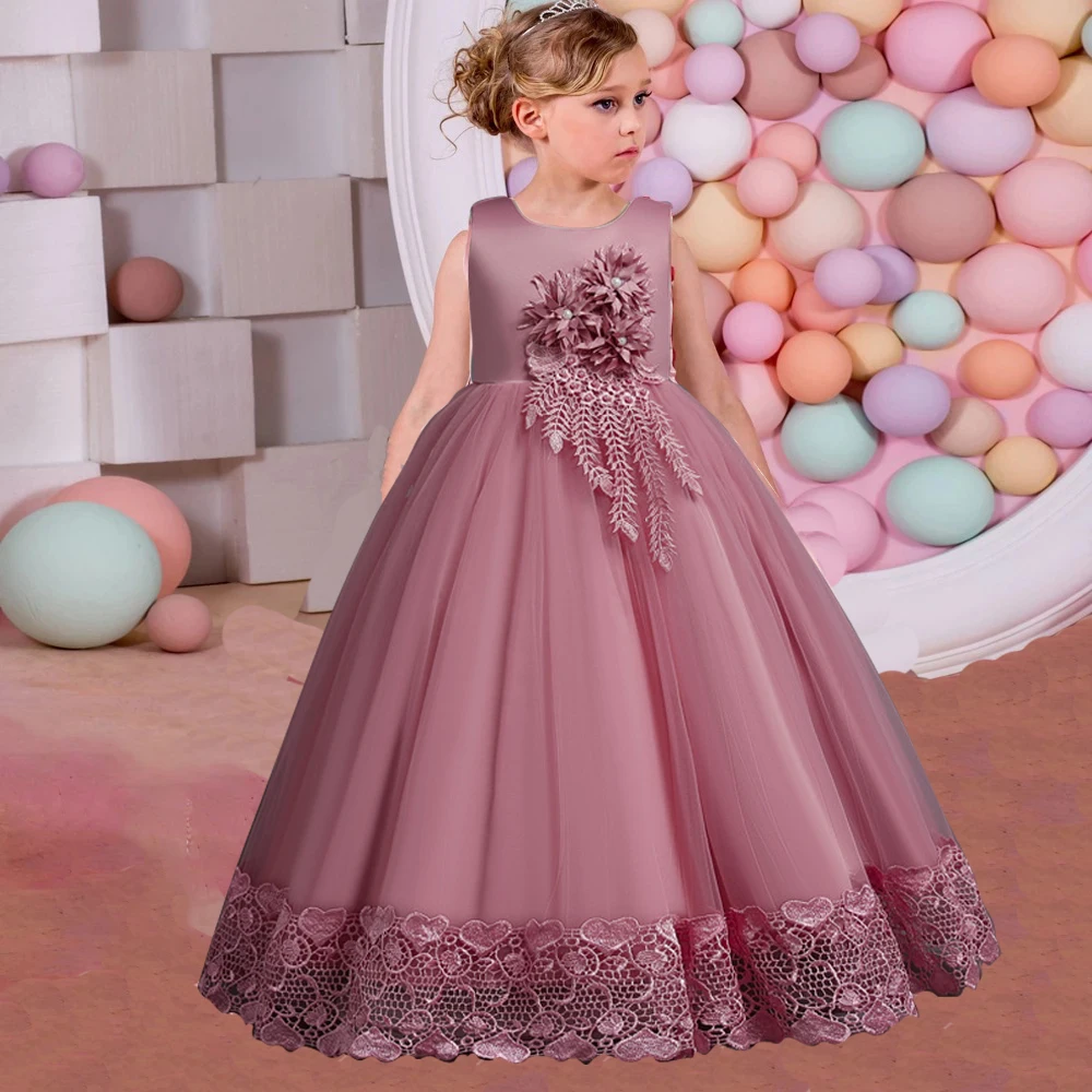 Teen Girls Flower Embroidery Party Dress Kids Long Princess Gown For Wedding Girl Birthday Baptism Dresses Graduation Piano Wear